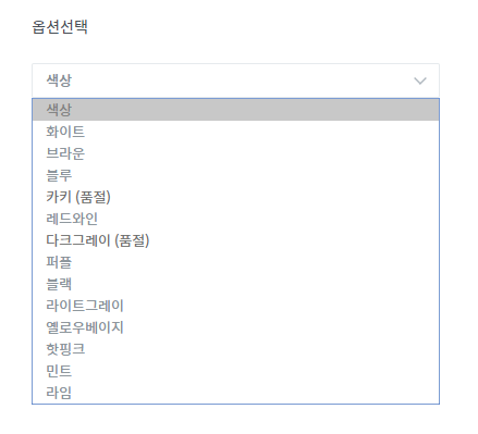 레드와인 < 퍼플 < 카키 < 화이트 < 다크 그레이 < 브라운 < 블루