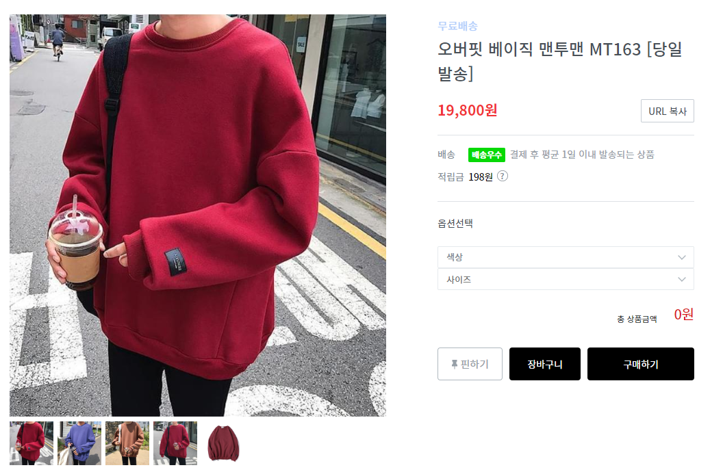 장점: 가격이 싸고 옷 색상도 많아서 많은 코디에